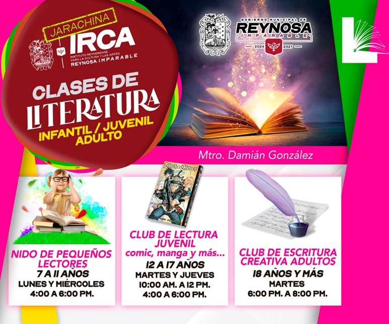 El Alcalde Carlos Peña Ortiz, a través del Instituto Reynosense para la Cultura y las Artes, invita a niños, jóvenes y adultos a inscribirse en las clases de literatura que se imparten en el IRCA sede Jarachina.